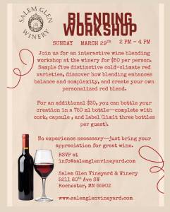 Join us for an interactive wine blending workshop at the winery for $50 per person. Sample five distinctive cold-climate red varieties, discover how blending enhances balance and complexity, and create your own personalized red blend.