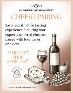 Enjoy four expertly selected cheeses. Perfectly for Salem Glen wines and Ciders.