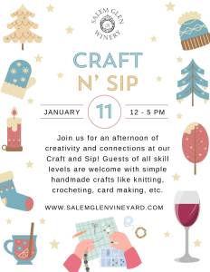 Join us for an afternoon of creativity and connection at our Craft and Sip Day! Guests of all skill levels are welcome to unwind with simple hands-on crafts like knitting, crochet, basic sketching, or collage-making.