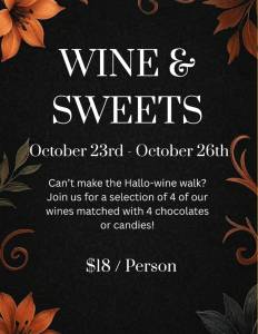 Join us for a festive pairing of our handcrafted wines with your favorite Halloween sweets.